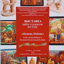 Исторические события Великой Отечественной войны, эпизоды фронтовой жизни, быт советского народа в тылу – все эти темы отражены в работах студентов РУТХП, которые можно увидеть на тематической выставке «Память Победы».