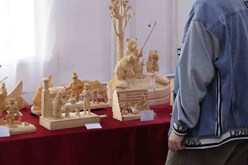 На открытии выставки присутствовали студенты Сергиево-Посадского института игрушки и студенты Богородского института художественной резьбы по дереву.