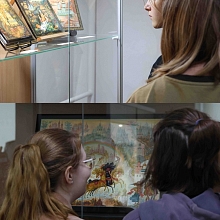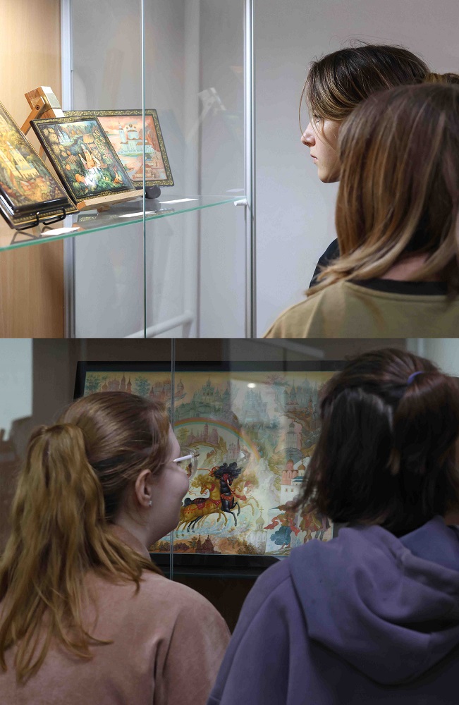 В экспозиции представлены лаковая миниатюрная живопись, роспись по такни, ювелирное искусство. Огромный интерес студенты проявили к традиционной художественной игрушке, Богородской игрушке и скульптуре.