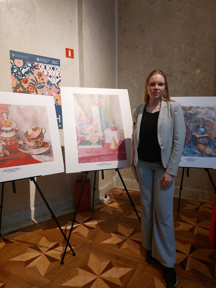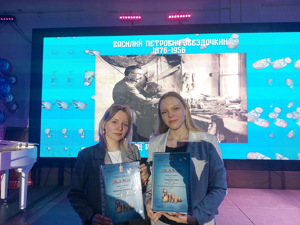 17 апреля 2026 года студенты высшего образования направления подготовки 54.03.01 "Дизайн" с доцентом Ковалевой М. А. посетили торжественное подведение итогов IV Открытого конкурса авторской игрушки имени В. П. Звездочкина, которое состоялось в стенах Всероссийского музея декоративно-прикладного и народного искусства. Дипломы лауреатов конкурса в номинации "Тематический натюрморт с традиционной русской игрушкой" получили: