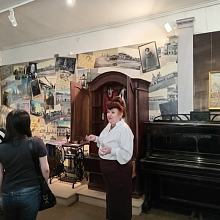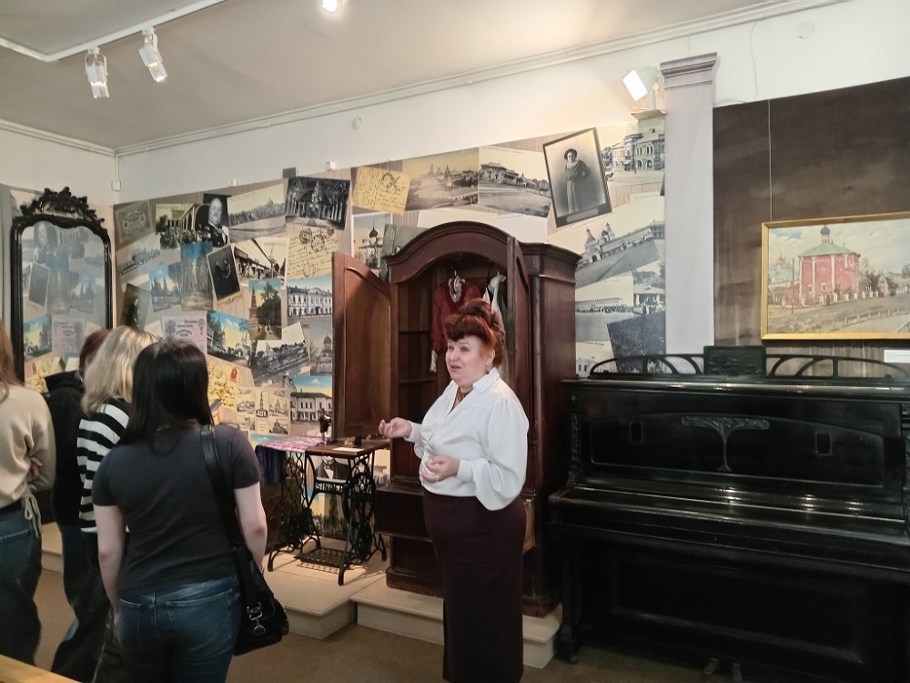 Студенты с интересом рассматривали подлинные предметы быта, наряды, предметы интерьера и с удовольствием слушали рассказ экскурсовода.