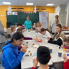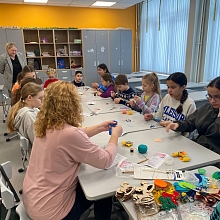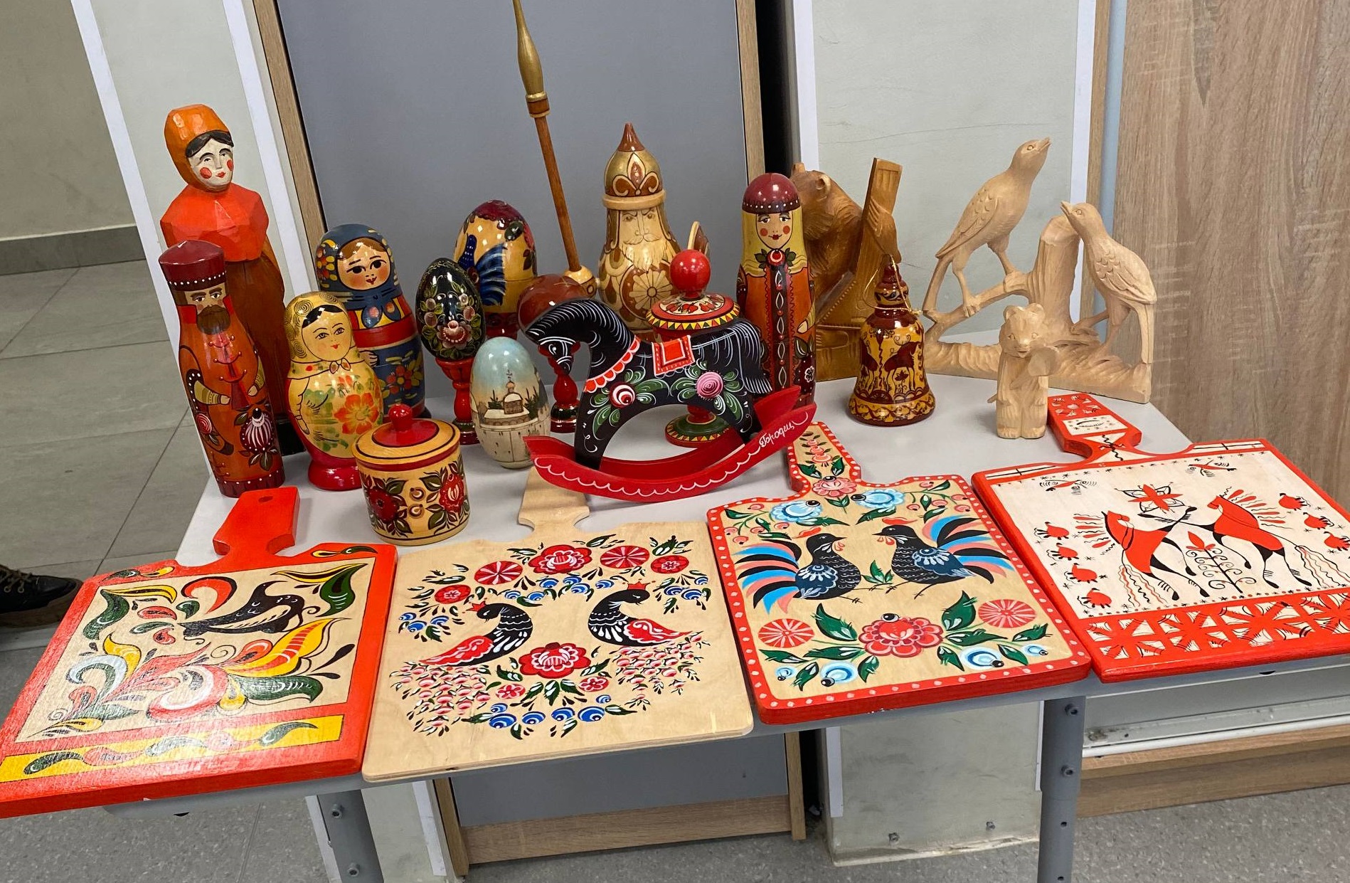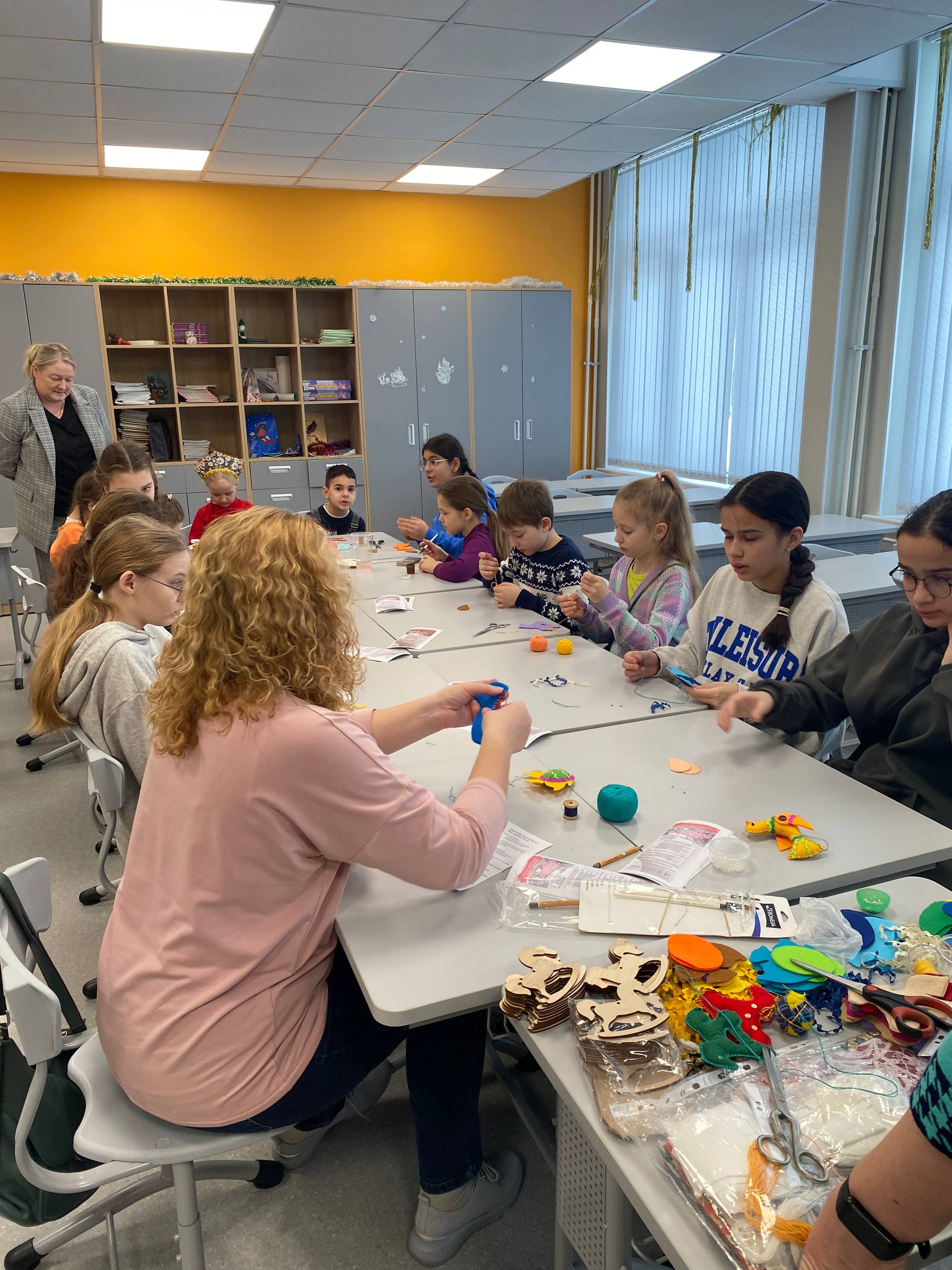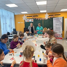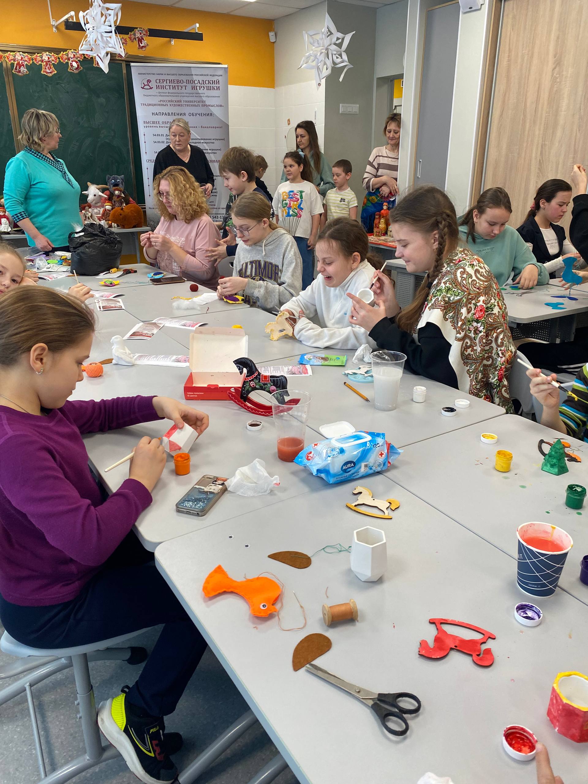 21 февраля 2026 года исполняющий обязанности директора Назарова О.Г. и заведующий кафедрой профессиональных дисциплин Баранова Д.Н. приняли участие в Дне народных промыслов в школах Подмосковья в Гимназии №3 г. Ивантеевка городского округа Пушкинский Московской области, где провели профориентационную работу и мастер-классы: по тряпичной кукле «Крестушка», «Куватка», мягкой игрушке «Рыбка», «Лошадка», «Птица», по росписи деревянной лошадки и росписи гипсовых фигурок.