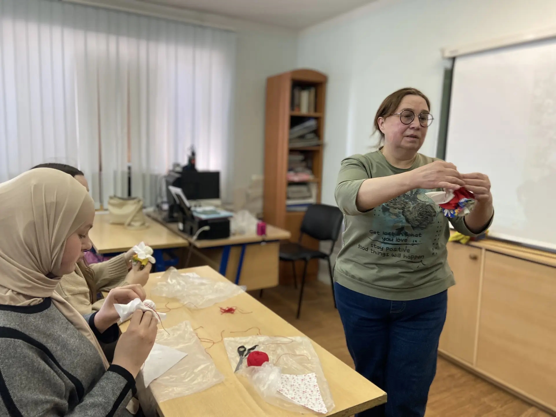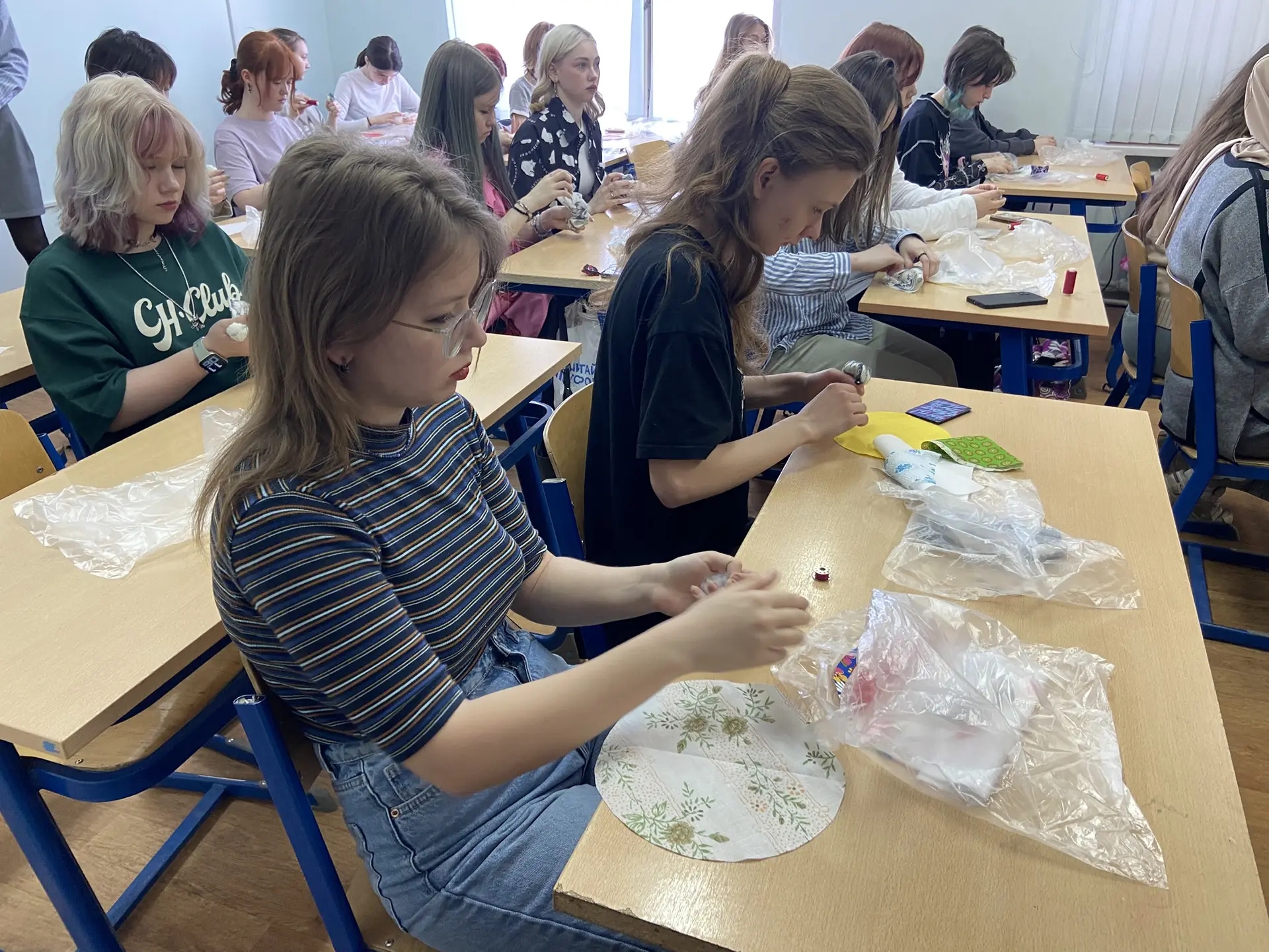 В заключение профориентационной беседы студенты приняли участие в мастер-классе по изготовлению тряпичной куклы «Колокольчик».